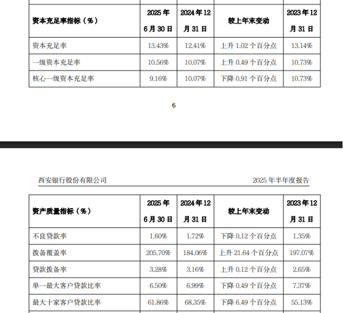 比如资本充足率指标方面,至今年6月底,西安银行的资本充足率、核心资本充足率分别为13.43%、10.56%,较年初分别增加1.02个百分点、0.49个百分点。资本净额则同比大增27.7%至477亿元,一级资本净额、核心一级资本净额等均有较大幅度增长。