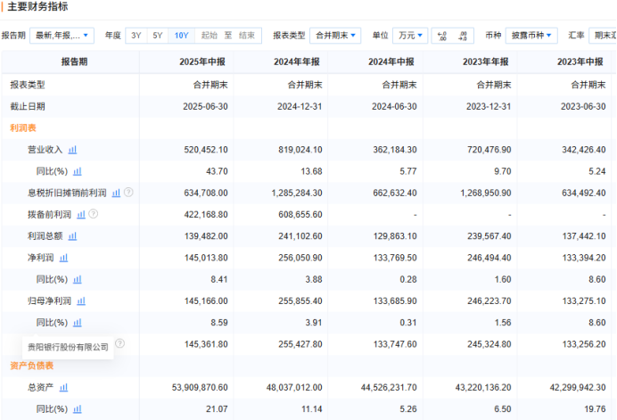 西安银行2025年上半年实现营业收入52.05亿元,同比增长43.70%。这一增速在17家A股上市城商行中位列榜首,大幅领先其他同行。