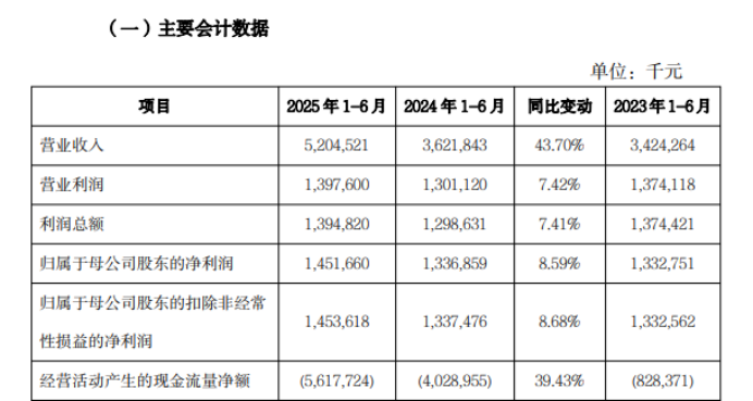 利润方面,上半年实现归属于母公司股东的净利润14.52亿元,同比增长8.59%。基本每股收益为0.33元,同比增长10.00%。扣除非经常性损益后的净利润也实现了8.68%的同比增长。这一系列数据表明,西安银行在盈利能力上实现了稳步提升,经营效益持续向好。