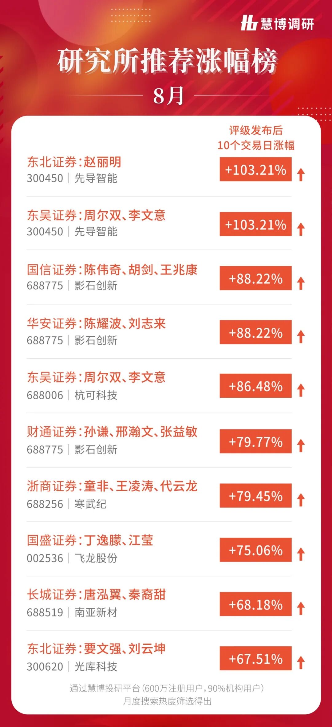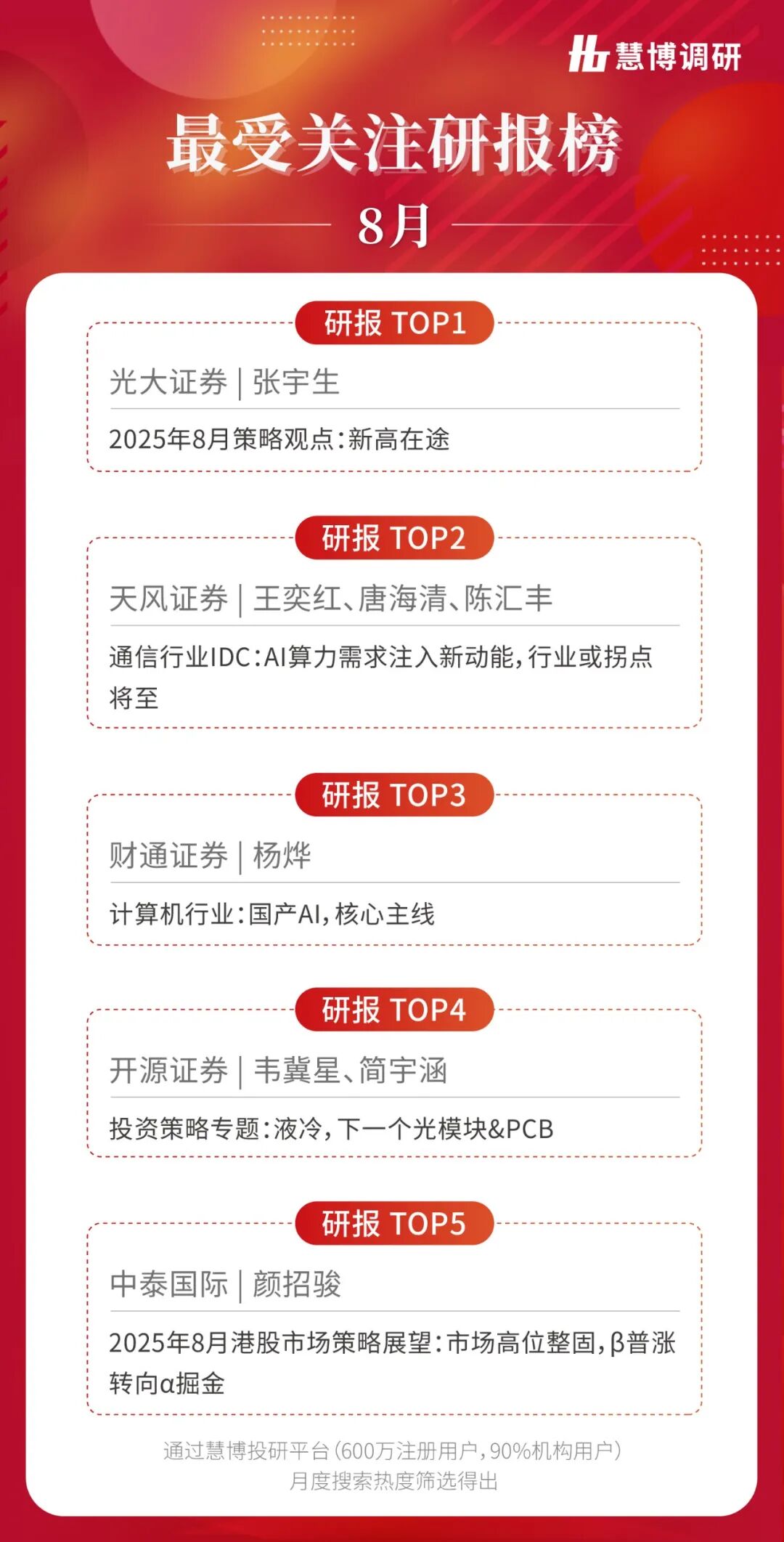慧博8月热门榜单出炉|这些赛道依旧火热!