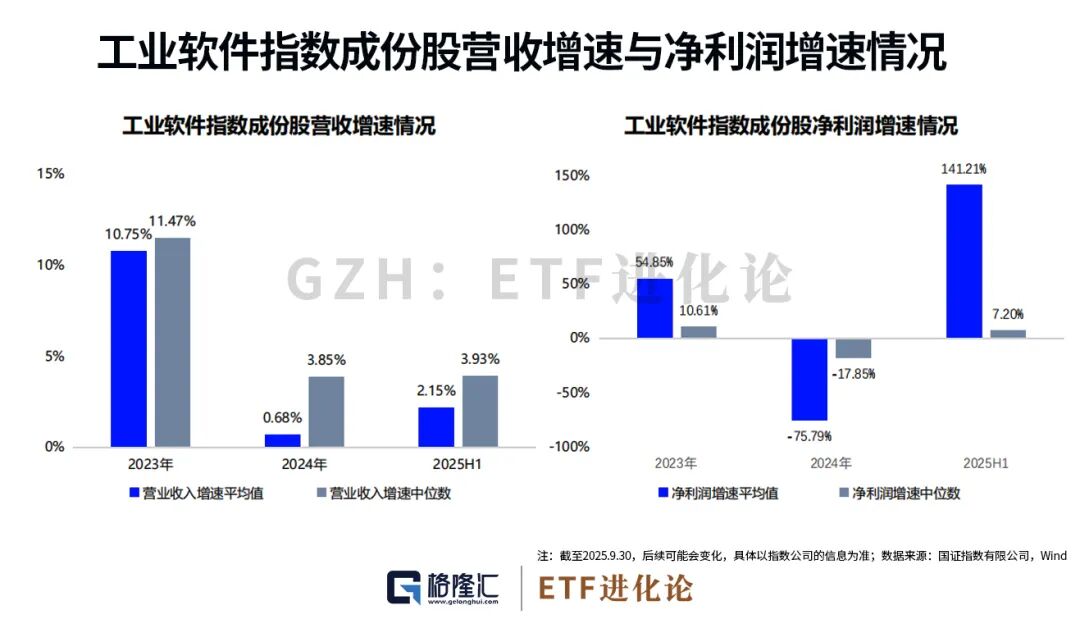 2025年上半年,工业软件指数成份股营收增速平均值升至2.15%,净利润增速同比增幅平均值更是达到141.21%。