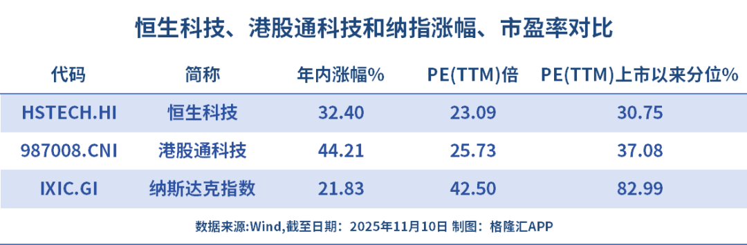 尽管港股科技、恒生科技今年领涨全球,大幅跑赢纳指,但估值仍处于中底部区间。