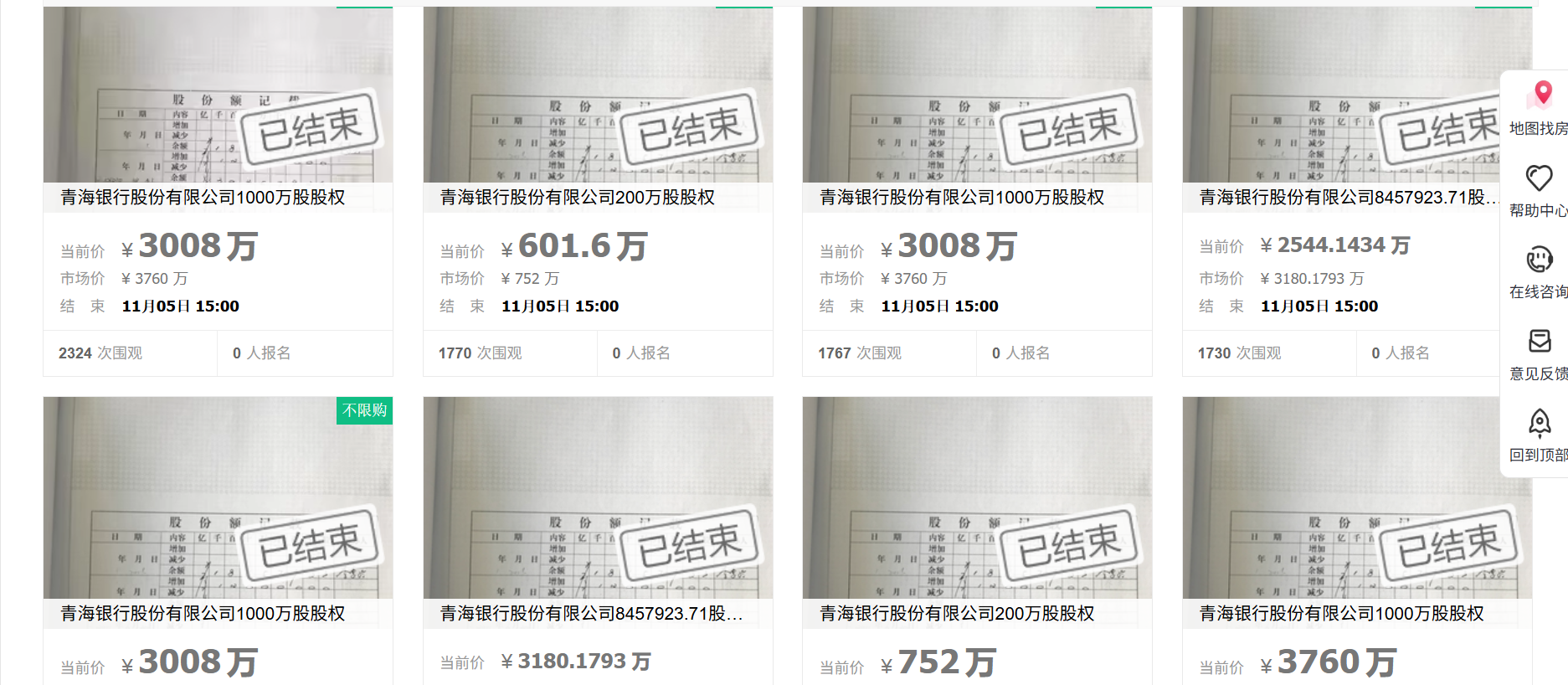 时代周报记者注意到,近年,青海银行股权多次遭流拍。最近一次是在11月5日,青海银行共约4045.79万股股权在阿里拍卖网开拍,起拍价合计约1.22亿元,并最终以流拍告终。