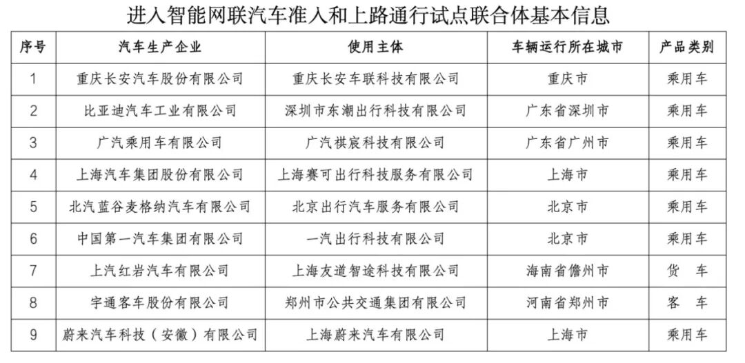 智能网联汽车准入和上路通行试点联合体 图源:工信部