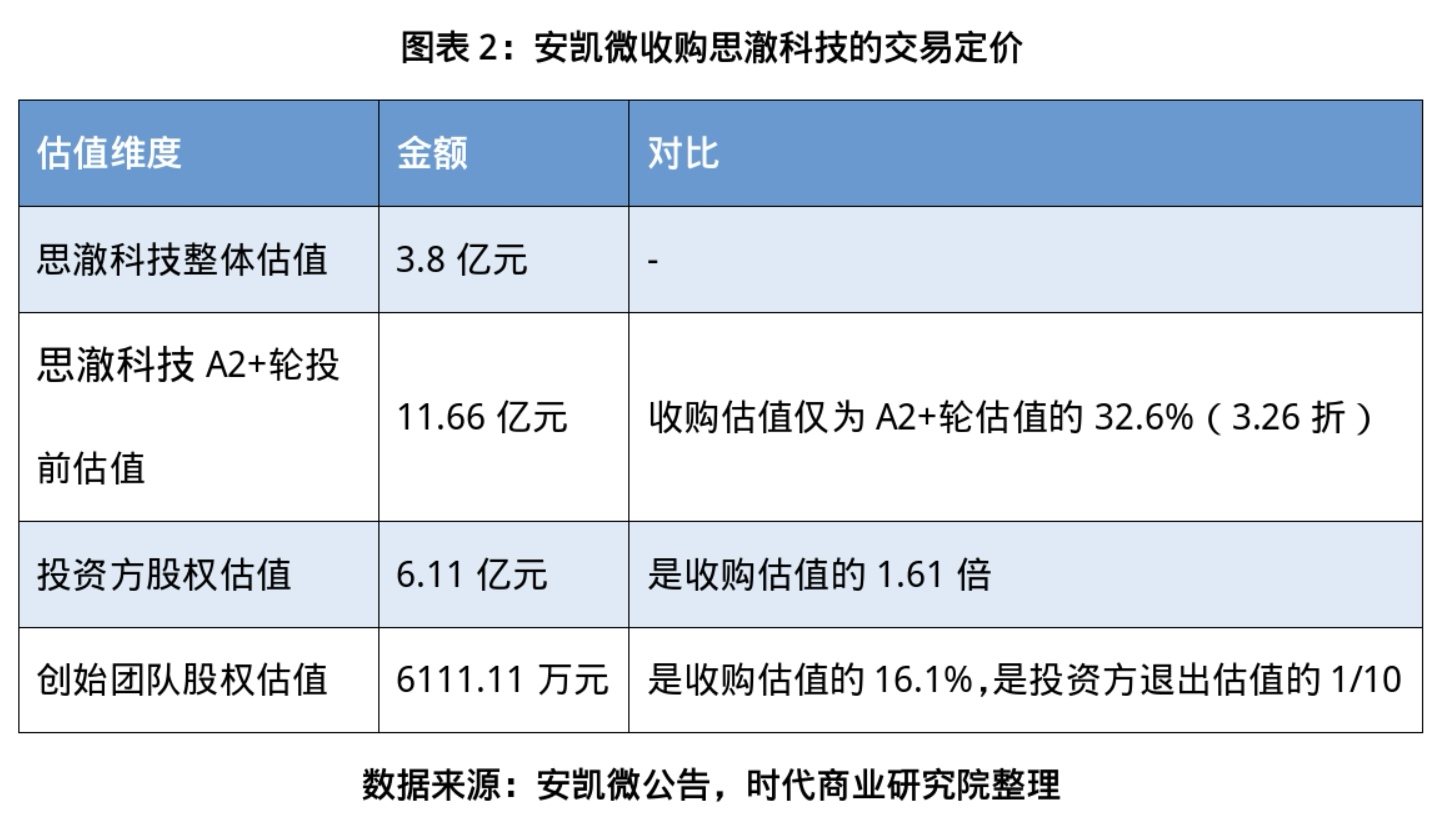 这场并购的估值博弈颇具看点。截至2025年7月末,思澈科技净资产仅为4726.64万元,而本次交易整体估值达3.80亿元,对应净资产增值率高达714.53%,后续将形成大额商誉。值得注意的是,这一估值较其前两轮融资大幅缩水超66%——思澈科技A2轮、A2+轮投前估值分别达11.2亿元、11.66亿元。此次估值回归理性,为安凯微降低了收购溢价的风险。