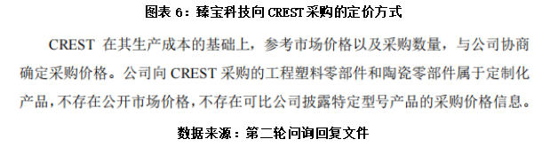 更可疑的是采购定价公允性。CREST作为境外小供应商,无公开财务数据和市场报价,臻宝科技称采购定价采用“成本加成+协商确定”的模式,但未披露具体加成率,也未提供CREST向其他客户销售的价格作为参考依据,无法佐证定价的公允性。