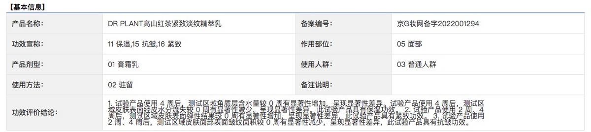 然而,招股书及药监局备案信息显示,红茶系列均为普通化妆品,即其不具备归属于特殊化妆品功效范畴的美白功效。具体而言,红茶系列的功效主要有11保湿、15抗皱、16紧致等。