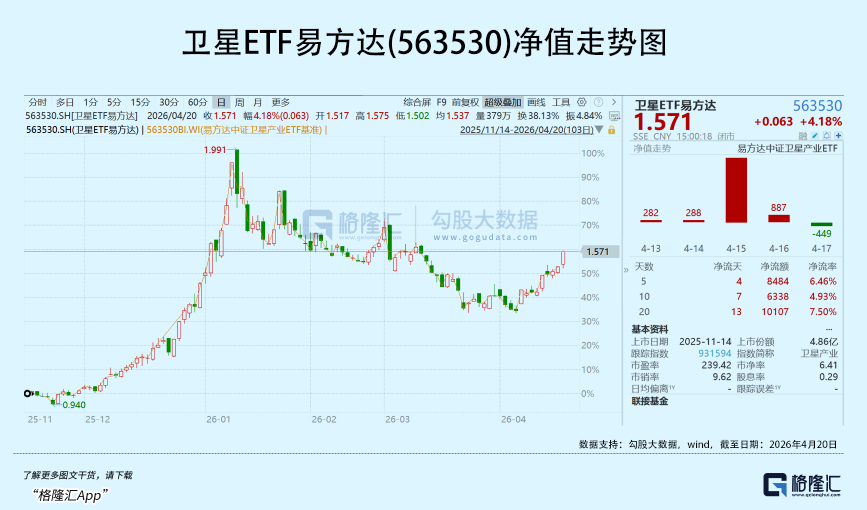 聚焦赛道龙头公司的卫星ETF易方达(563530)今日涨4.18%,近9个交易日涨超18%。